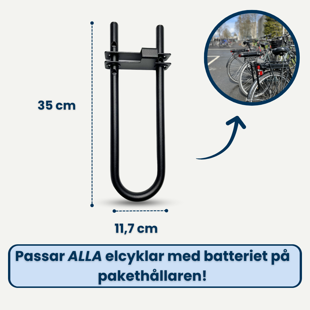 - Passform: Passar endast elcyklar med batteri på pakethållaren.